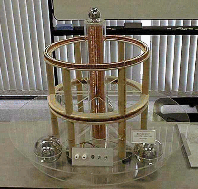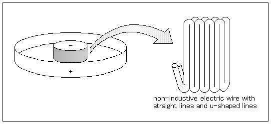 , the inner cylinder is electrified into positive and the outer cylinder into negative. And the two connecting terminals close. Provided that the double coils of this negative inductor is boosted with 500 Volts, the electromotive force of the opposite self-induction is 15 Volts in the initial time.